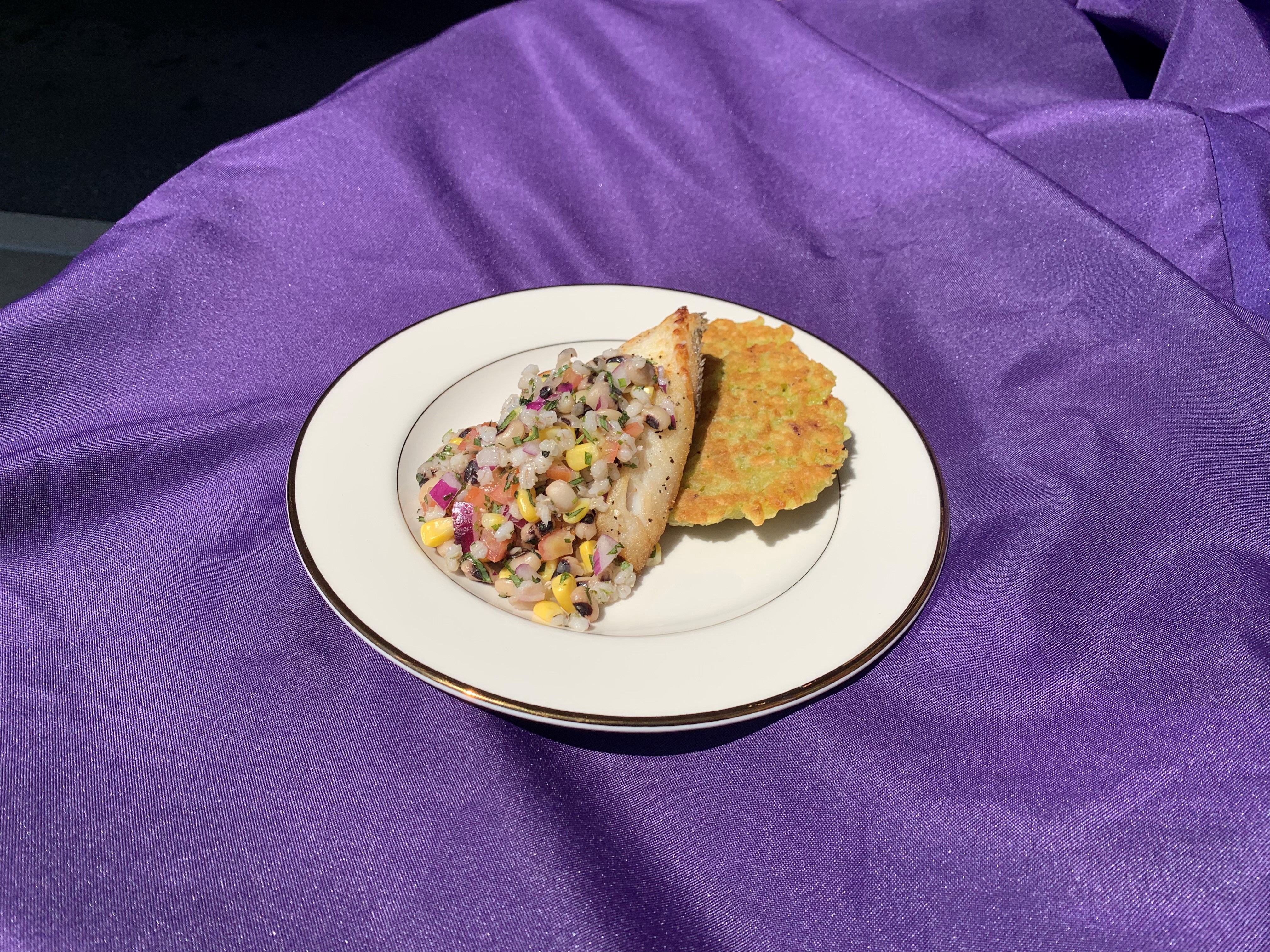 Dish Name: Pan Seared Grouper with a Sorghum Succotash and Yucca Latke